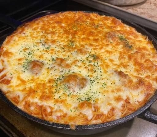 This recipe feeds a crowd without expensive ingredients. Ground beef, spaghetti, jarred marinara, and basic cheeses create a meal that feels indulgent yet remains affordable.