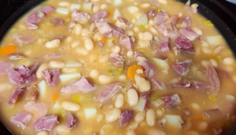 The beans form the base. Onion and garlic build flavor. Ham adds smokiness and richness. Bay leaf brings subtle depth, while salt and pepper balance everything.