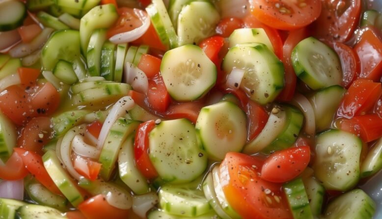 With only five ingredients and zero cooking required, Marinated Cucumbers, Onions and Tomatoes proves that the simplest dishes often deliver the most flavor. Once you add this vibrant salad to your rotation, you may find it becomes a permanent warm-weather favorite.