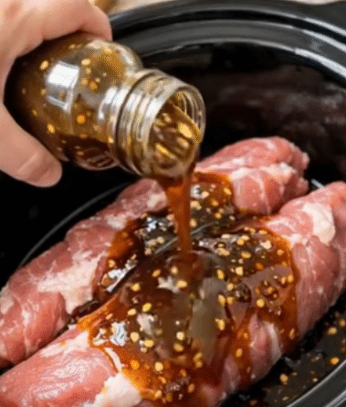 Cover the slow cooker and cook on LOW for 6–7 hours or HIGH for 3–4 hours. The pork is ready when it becomes very tender and easily shreds with a fork. Slow cooking ensures that the pork stays moist and absorbs all the delicious flavors from the sauce, onion, and garlic.