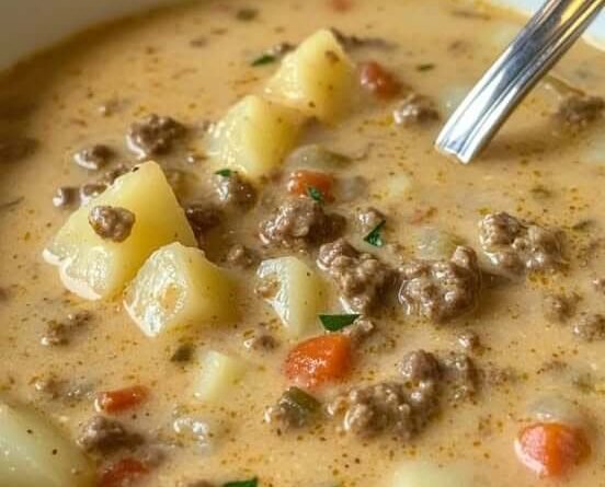 Slow Cooker Cheesy Burger Flavored Soup is the ultimate comfort meal when you crave something warm, creamy, and deeply satisfying. This hearty soup blends the bold flavors of a classic cheeseburger with the ease and convenience of slow cooking. Because it uses simple ingredients like ground beef, potatoes, cheddar cheese, and savory broth, it delivers familiar flavor in every spoonful.