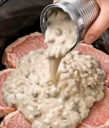 The true secret behind Slow Cooker Creamy Mushroom Pork Chops lies in the sauce. Condensed cream of mushroom or cream of chicken soup forms a thick, savory base. Meanwhile, the onion soup mix adds depth, salt, and aromatic flavor.